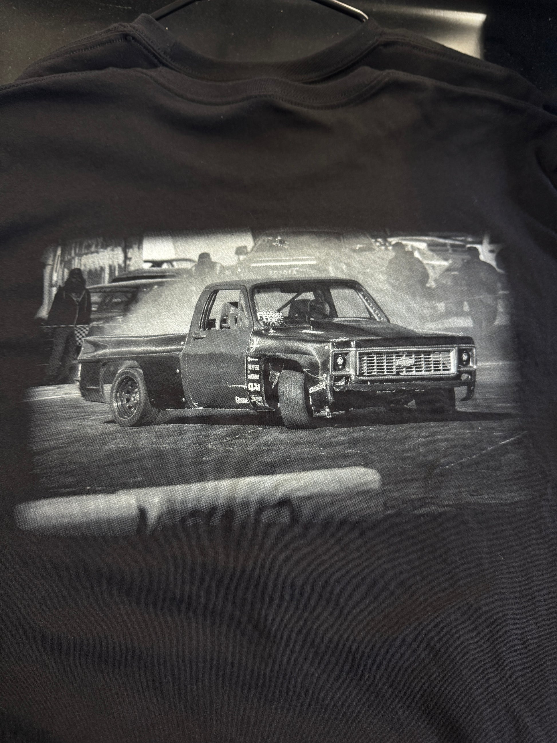 Black and white truck photo on the back